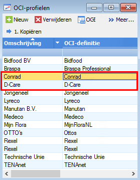 Pour apporter les modifications dans votre lien OCI existant vers Bidfood et Technische Unie, vous devez actualiser manuellement les définitions OCI :